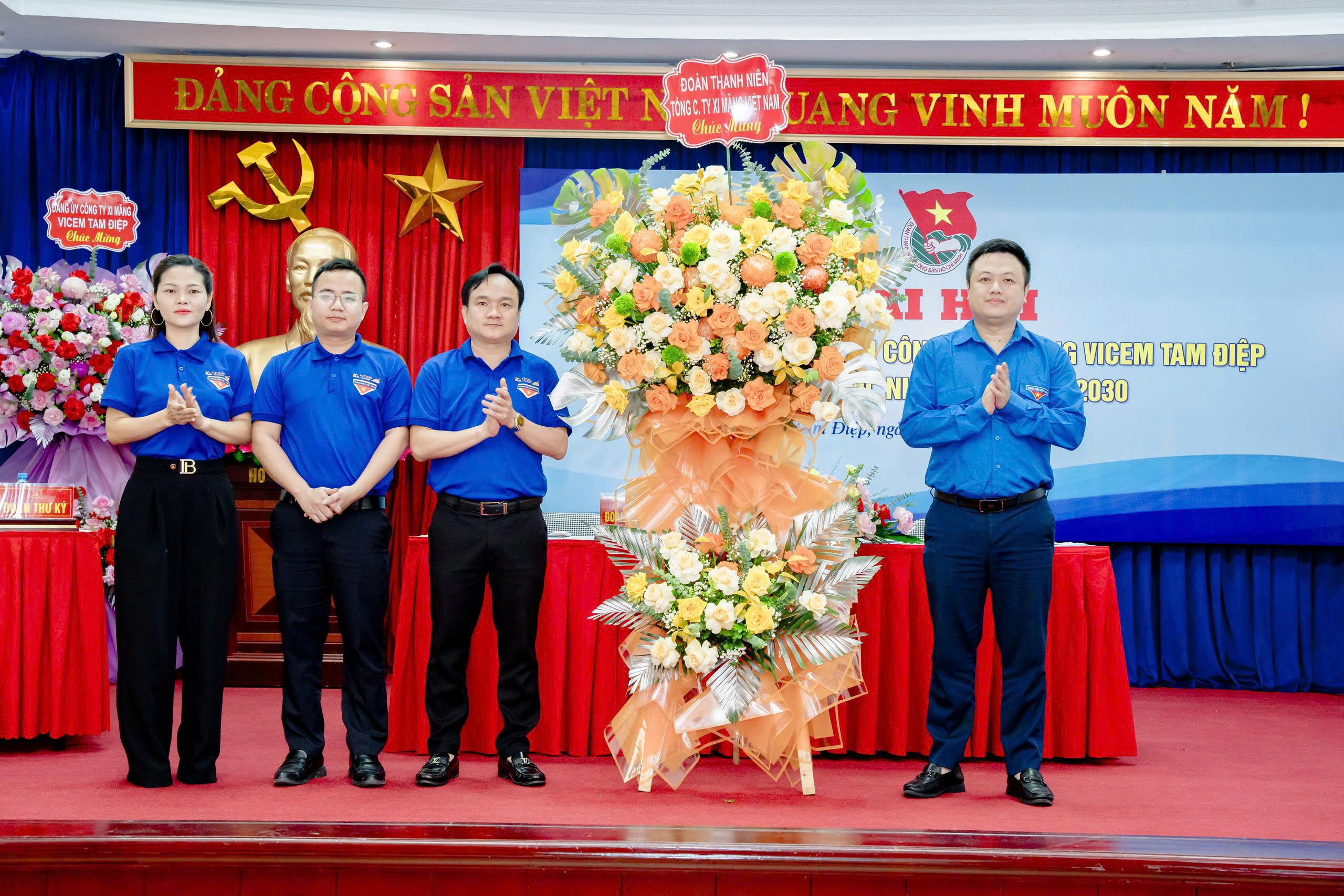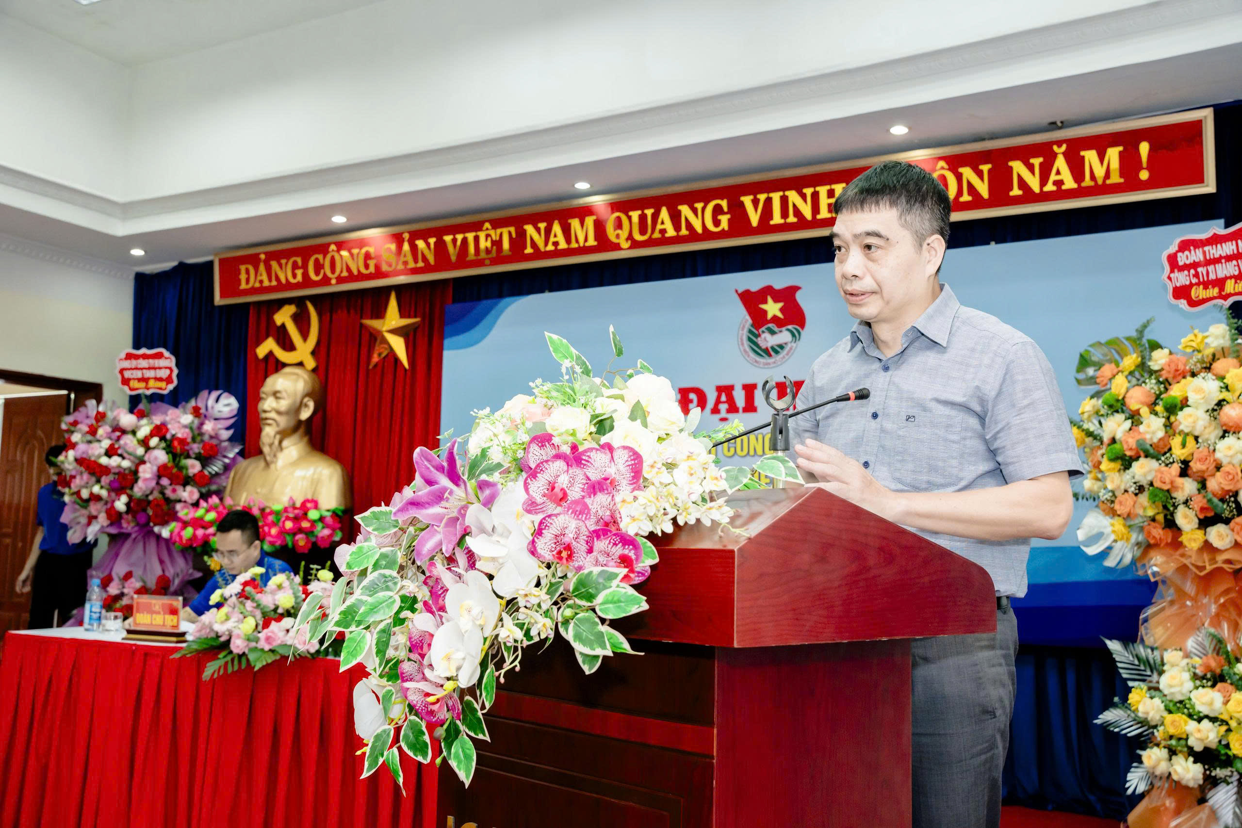 Đồng chí Nguyễn Mạnh Tùng – Bí thư Đoàn thanh niên Tổng công ty Xi măng Việt Nam tặng hoa chúc mừng Đại hội