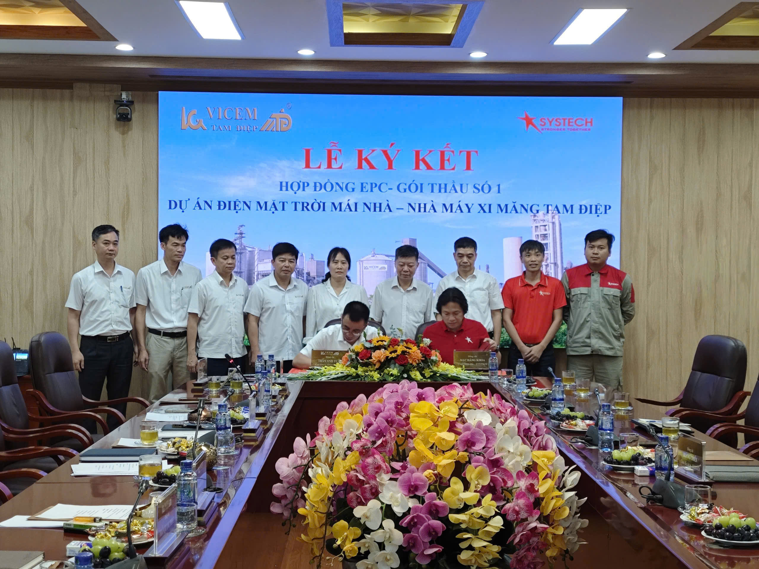 Lễ ký kết hợp đồng EPC gói thầu số 1 Dự án điện mặt trời mái nhà tại nhà máy Xi măng Vicem Tam Điệp thành công tốt đẹp, mở ra giai đoạn mới cho sự phát triển xanh và bền vững của Công ty Xi măng Vicem Tam Điệp.