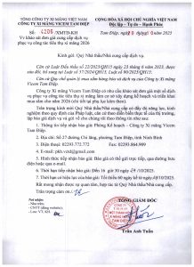 Phát huy truyền thống đoàn kết, tương thân tương ái của CBCNV-LĐ; Tổng Giám đốc và Chủ tịch Công đoàn Công ty kêu gọi toàn thể cán bộ, đoàn viên, người lao động ủng hộ đóng góp mỗi người 01 ngày lương sản phẩm – thể hiện trọn vẹn tinh thần sẻ chia, trách nhiệm và gắn bó của một tập thể luôn đặt con người làm trung tâm trong mọi giá trị phát triển.